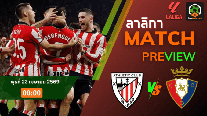 ศึกลา ลีกา คืนวันพุธที่ 22 เมษายน 2569 เกมนี้ แอธเลติก บิลเบา อันดับ 11 เปิดรังเอสตาดิโอ ซาน มาเมส รับมือโอซาซูน่า อันดับ 9 ในแมตช์ที่ทั้งสองฝ่ายต่างต้องการแต้มเพื่อเรียกความมั่นใจกลับมาให้ได้ เจ้าถิ่นผลงานช่วงหลังแผ่วลงชัดเจน ขณะที่ทีมเยือนเองก็ไม่ได้อยู่ในจังหวะที่นิ่งนัก ทำให้เกมนี้ยังเต็มไปด้วยแรงกดดันทั้งสองฝั่ง สำหรับแฟนบอลที่กำลังเช็ก ตารางบอลวันนี้ คู่นี้ถือว่าเป็นอีกเกมที่น่าสนใจไม่น้อย ส่วนราคาบอลวันนี้เปิดมาให้บิลเบาต่อ 0.5 บ่งบอกว่าความได้เปรียบในบ้านยังทำให้พวกเขาถูกยกเป็นต่ออยู่เล็กน้อย