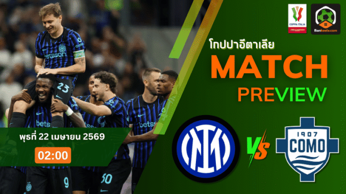 คืนวันพุธที่ 22 เมษายน 2569 เวลา 02.00 น. ศึกโคปปา อิตาเลีย รอบ 4 ทีมสุดท้าย นัดสอง ระหว่าง อินเตอร์ มิลาน เปิดรังรับมือโคโม่ ที่สนามสตาดิโอ จูเซ็ปเป้ เมอัซซ่า กลายเป็นอีกคู่เดือดที่แฟนบอลห้ามละสายตา หลังเลกแรกเสมอกัน 0-0 ทำให้เกมนี้ไม่มีใครได้เปรียบเรื่องสกอร์สะสม และทุกอย่างต้องมาตัดสินกันใน 90 นาทีแบบเข้มข้นเต็มพิกัด