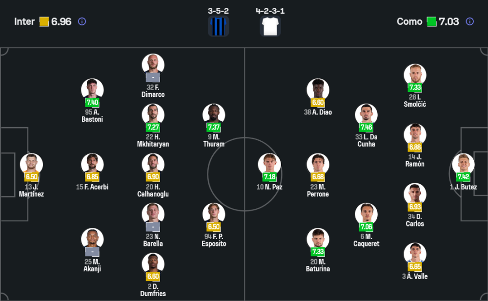 จากภาพรวม อินเตอร์น่าจะยึดระบบ 3-5-2 ตามถนัด แดนกลางใช้พลังงานของ บาเรลล่า, ชัลฮาโนกลู และมคิทาร์ยาน คอยคุมจังหวะ พร้อมเปิดพื้นที่ให้ ดุมฟรีส์ และดิมาร์โก้ เติมเกมจากด้านข้าง ส่วนแนวรุกฝากความหวังไว้ที่ มาร์คุส ตูราม กับ ฟรานเชสโก้ ปิโอ เอสโปซิโต้ ที่พร้อมเล่นงานแนวรับทีมเยือนตลอดทั้งเกม