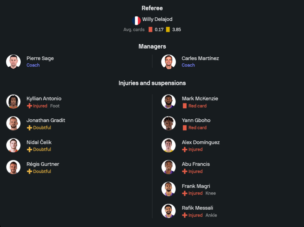 สภาพทีมยังมีตัวเจ็บและเช็กฟิตอยู่หลายราย ไม่ว่าจะเป็น คีลิยัน อันโตนิโอ, โชนาต็อง กราดีต์, นีดาล เซลิค และ เรกิส กูร์ตแนร์ แต่ภาพรวมยังถือว่าล็องส์มีโครงสร้างทีมที่ลงตัวกว่าเดิม โดยเฉพาะเกมรุกที่พร้อมสร้างปัญหาให้แนวรับทีมเยือนได้ตลอด