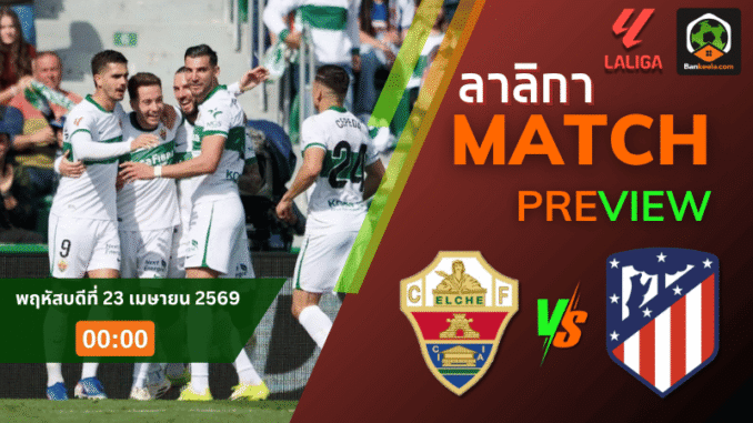 ศึก ลาลีกา สเปน คืนวันพฤหัสบดีที่ 23 เมษายน 2569 เวลา 00.00 น. เอลเช่ ทีมอันดับ 18 เปิดสนามมานูเอล มาร์ติเนซ บาเลโร่ รับมือ แอตเลติโก้ มาดริด ทีมอันดับ 4 ในเกมที่ต่างฝ่ายต่างมีเหตุผลให้ต้องเอาแต้มเต็มกลับไปให้ได้ เจ้าถิ่นต้องสู้เพื่อหนีตกชั้น ส่วนทีมเยือนต้องรักษาพื้นที่หัวตารางเอาไว้ให้แน่น เกมนี้ราคาบอลเปิดมาเสมอ สะท้อนชัดว่าแม้ชื่อชั้นตราหมีจะดูดีกว่า แต่เมื่อดูจากฟอร์มและจังหวะของทีมในช่วงนี้ คู่นี้ไม่ได้ห่างกันอย่างที่หลายคนคิด และถือเป็นอีกคู่สำคัญใน ตารางบอลวันนี้ ที่มีสิทธิ์ออกได้หลายหน้า