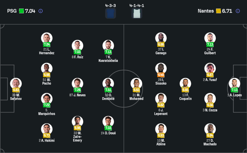 รูปแบบการเล่นน่าจะยึดระบบ 4-3-3 ตามถนัด ผู้รักษาประตูเป็น มัตเวย์ ซาโฟนอฟ แนวรับมี ฮาคิมี่, มาร์กินญอส, ปาโช และ ลูคัส แอร์กน็องเดซ แดนกลางใช้ วาร์แร็ง ซาอีร์ เอเมอรี่, ชูเอา เนเวส และ ฟาเบียน รุยซ์ ส่วนสามตัวรุกเป็น ดูเอ้, เดมเบเล่ และ ควารัตสเคเลีย จุดเด่นยังอยู่ที่สปีดเกมและการบุกจากด้านข้างที่พร้อมฉีกแนวรับคู่แข่งได้ตลอด