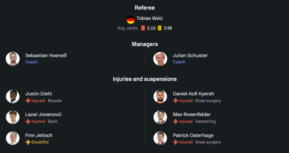 ไฟร์บวร์กกำลังเล่นด้วยความมั่นใจสุดขีด หลังชนะมา 4 นัดติดในทุกรายการ ทั้งเกมลีกและเวทียุโรป พวกเขาชนะไฮเดนไฮม์, ไมนซ์ และจัดการเซลต้า บีโก้ ได้ทั้งเหย้าและเยือน ฟอร์มแบบนี้ทำให้บรรยากาศในทีมกำลังคึกคักเต็มที่