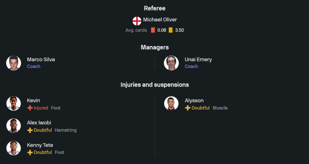 ฟูแล่มของ มาร์โก้ ซิลวา เตรียมมาในระบบ 4-2-3-1 โดยมี แบร์นด์ เลโน่ เฝ้าเสา แนวรับใช้ ตีโมธี กาสตาญ, โยอาคิม แอนเดอร์เซ่น, แคลวิน บาสซี่ย์ และ ไรอัน เซสเซญง แดนกลางวาง ซาซ่า ลูคิช จับคู่ ทอม แคร์นี่ย์ ส่วนแนวรุกมี แฮร์รี่ วิลสัน, เอมิล สมิธ โรว์ และ ซามูเอล ชุควูเอเซ่ คอยสนับสนุน โรดริโก้ มูนิซ หน้าเป้า ความเสียหายหลักอยู่ที่ เควิน เจ็บเท้า ส่วน อเล็กซ์ อิโวบี้ และ เคนนี่ เตเต้ ยังต้องเช็กความฟิต ทำให้ตัวเลือกริมเส้นและเกมรุกบางจุดลดความยืดหยุ่นลงไปพอสมควร