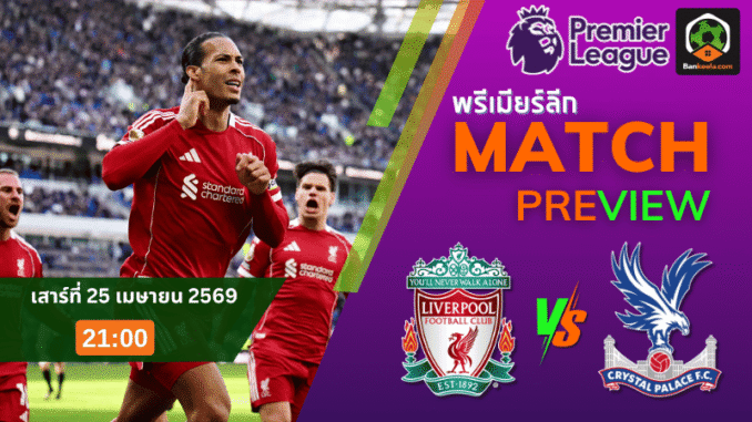 ศึกพรีเมียร์ลีก อังกฤษ คู่ที่แฟนบอลต้องจับตาใน ตารางบอลวันนี้ เป็นเกมที่ แอนฟิลด์ เตรียมลุกเป็นไฟ เมื่อ ลิเวอร์พูล อันดับ 5 เปิดบ้านรับมือ คริสตัล พาเลซ ทีมอันดับ 13 ในวันเสาร์ที่ 25 เมษายน 2569 เวลา 21.00 น. เกมนี้ราคาบอลเปิดมาให้ ลิเวอร์พูล ต่อ 1.25 ถือเป็นเรตที่สะท้อนชื่อชั้นและความแข็งแกร่งในบ้านของเจ้าถิ่น แต่เมื่อมองลึกลงไป ทีมงานบ้านกีฬามองว่านี่ไม่ใช่งานง่ายเลย เพราะสภาพทีมของหงส์แดงยังมีจุดเปราะ โดยเฉพาะแนวรับและตำแหน่งผู้รักษาประตู ขณะที่พาเลซเป็นบอลที่เล่นสวนกลับได้คม มีระเบียบ และมักสร้างปัญหาให้ลิเวอร์พูลในช่วงหลังได้ดีเหลือเกิน