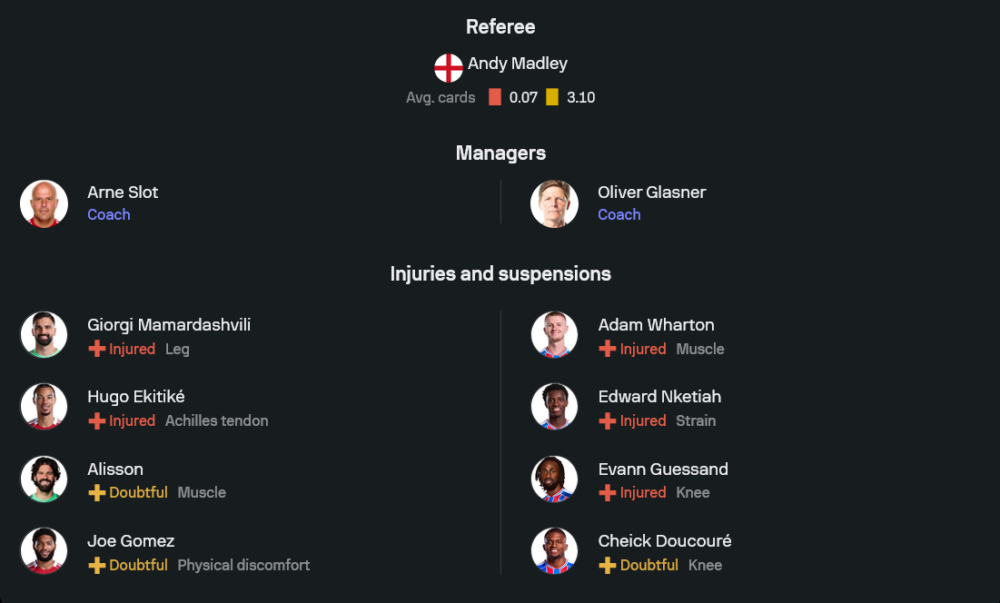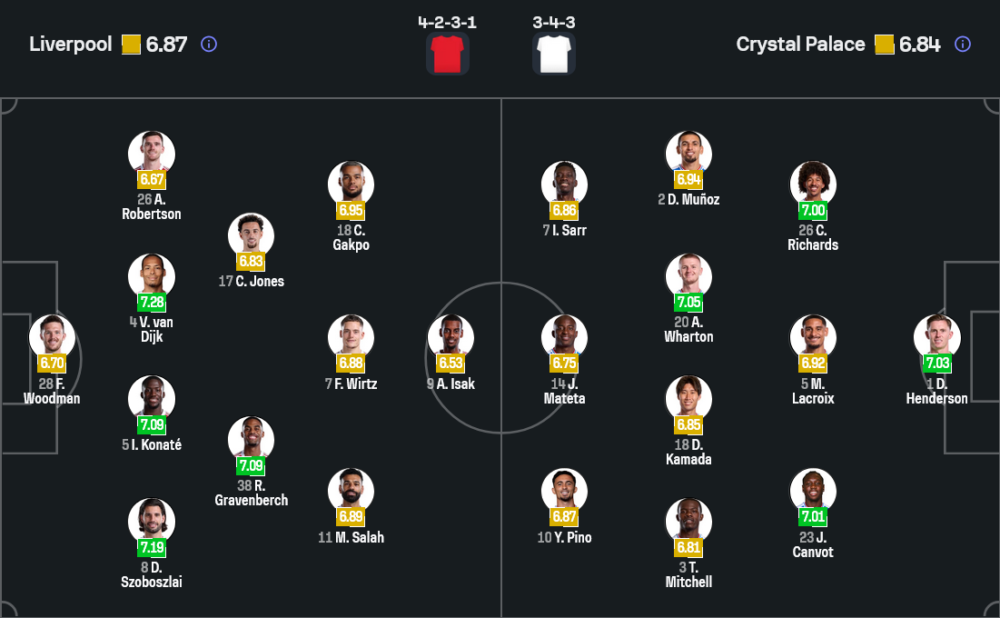 ลิเวอร์พูลของ อาร์เน่อ สล็อต น่าจะมาในระบบ 4-2-3-1 โดยมี เฟรเดริค วู้ดแมน เฝ้าเสา แนวรับใช้ เยเรมี่ ฟริมปง, อิบราฮิม่า โกนาเต้, เฟอร์กิล ฟาน ไดย์ค และ แอนดรูว์ โรเบิร์ตสัน แดนกลางวาง โดมินิค โซโบสไล จับคู่ ไรอัน กราเวนเบิร์ช ส่วนแนวรุกมี โมฮาเหม็ด ซาล่าห์, ฟลอเรียน เวียร์ตซ์, เคอร์ติส โจนส์ และใช้ อเล็กซานเดอร์ อิซัค ยืนหน้าเป้า จุดที่น่าห่วงคือรายชื่อบาดเจ็บทั้ง จอร์จี้ มามาร์ดาชวิลี่, อูโก้ เอกิติเก้ รวมถึง อลิสซง กับ โจ โกเมซ ที่ยังต้องเช็กความพร้อม ทำให้ขุมกำลังไม่สมบูรณ์เท่าที่ควร