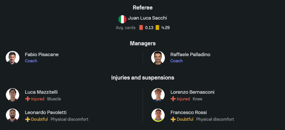 ราฟฟาเอเล่ ปัลลาดิโน่ เพิ่งพาทีมผ่านเกมหนักมาในบอลถ้วย ทำให้มีโอกาสโรเตชั่นบางตำแหน่ง แต่แกนหลักหลายรายยังพร้อมลงสนาม