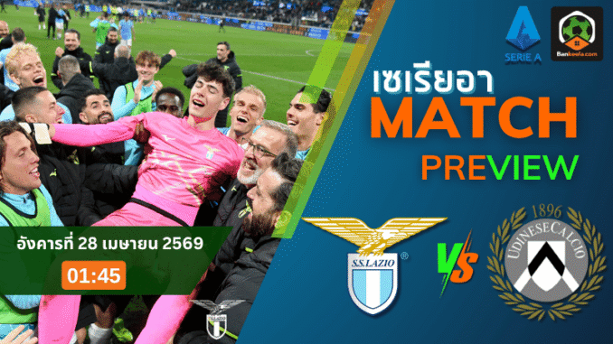 ศึกกัลโช่ เซเรีย อา อิตาลี คืนวันอังคารที่ 28 เมษายน 2569 เวลา 01:45 น. เป็นอีกหนึ่งคู่ใน ตารางบอลวันนี้ ที่น่าจับตาอย่างมาก เมื่อ ลาซิโอ เตรียมเปิดบ้านที่สตาดิโอ โอลิมปิโก้ รับมือ อูดิเนเซ่ เกมนี้ราคาบอลเปิดมาให้เจ้าถิ่น ลาซิโอ ต่อ 0.25 สะท้อนภาพชัดว่าแม้ชื่อชั้นและการเล่นในบ้านของอินทรีฟ้า-ขาวจะดูเหนือกว่า แต่ช่องว่างไม่ได้ห่างถึงขั้นวางใจได้ เพราะอูดิเนเซ่ช่วงหลังเป็นทีมที่เล่นนอกบ้านได้อันตราย มีวินัยเกมรับ และสวนกลับได้คมพอตัว ทีมงานบ้านกีฬามองว่านี่ไม่ใช่เกมที่ลาซิโอจะเดินเครื่องบดง่าย ๆ ตลอด 90 นาที แต่เป็นเกมที่ต้องใช้ความละเอียดสูงมาก โดยเฉพาะในพื้นที่สุดท้าย