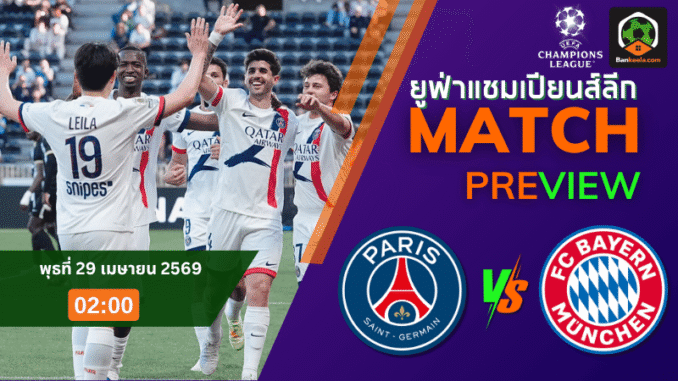ศึกยูฟ่า แชมเปี้ยนส์ ลีก รอบรองชนะเลิศ เลกแรก คืนวันพุธที่ 29 เมษายน 2569 เวลา 02.00 น. เป็นเกมใหญ่ระดับห้ามกะพริบตา เมื่อ เปแอสเช เปิดรังพาร์ค เดส์ แพรงส์ รับมือ บาเยิร์น มิวนิค ทีมแกร่งจากบุนเดสลีกา โดยราคาบอลวันนี้เปิดมาให้เจ้าบ้านต่อ ปป ลบห้า ถือเป็นเรตที่ชวนคิดหนัก เพราะแม้เปแอสเชจะได้เล่นต่อหน้าแฟนบอลตัวเอง แต่คู่แข่งตรงหน้าไม่ใช่ทีมที่จะกดหัวได้ง่ายๆ ใน ตารางบอลวันนี้ คู่นี้คือหนึ่งในเกมที่เดือดที่สุด เพราะทั้งสองทีมมีแนวรุกจัดจ้าน เกมสวนกลับอันตราย และต่างกำลังอยู่ในช่วงมั่นใจสุดขีด