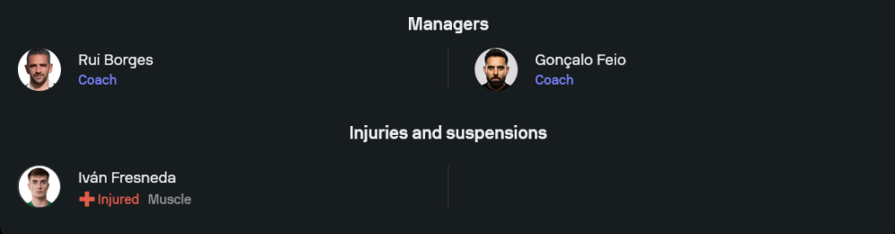 สปอร์ติ้ง ลิสบอน ภายใต้การคุมทีมของ รุย บอร์เกส มีปัญหาผู้เล่นเจ็บที่ต้องเช็ก โดยเฉพาะ อิวาน เฟรสเนดา ที่มีอาการบาดเจ็บกล้ามเนื้อ หมดสิทธิ์เป็นตัวเลือกในเกมนี้ ส่วนการจัดทัพคาดว่าจะยืนระบบ 4-2-3-1 แนวรับมี ริคาร์โด้ ซิลวา เฝ้าเสา แผงหลังประกอบด้วย วาเกียนนิดิส, ดิโอม็องเด้, เดบาสต์ และ มังกาส คู่กลางใช้ โมริตะ ประสานงานกับ โคโชราชวิลี่ แนวรุกสามตัวด้านหลังหน้าเป้าเป็น เควนด้า, ตรินเกา และ โปเต้ คอยปั้นเกมสนับสนุน ราฟาเอล เนล ที่ยืนเป็นหอกตัวเป้า จุดเด่นคือความเร็วริมเส้นกับการเข้าทำหลากหลาย หากเจ้าบ้านเร่งจังหวะตั้งแต่ต้น ทอนเดล่ามีสิทธิ์โดนกดจนตั้งเกมไม่ได้
