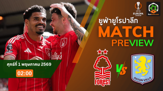 ศึก ยูฟ่า ยูโรปา ลีก คืนวันศุกร์ที่ 1 พฤษภาคม 2569 เวลา 02:00 น. มีเกมที่แฟนบอลอังกฤษจับตาแบบห้ามกระพริบ เมื่อ น็อตติ้งแฮม ฟอเรสต์ เปิดรัง ซิตี้ กราวน์ด รับการมาเยือนของ แอสตัน วิลล่า สองทีมจากพรีเมียร์ลีกที่รู้ไส้รู้พุงกันดีอยู่แล้ว และยิ่งโคจรมาเจอกันบนเวทียุโรป ความเดือดก็เพิ่มขึ้นแบบทวีคูณทันที