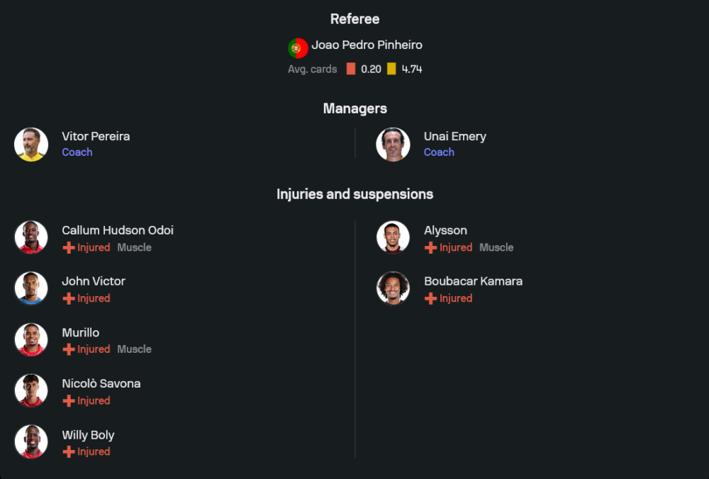 ฝั่ง อูไน เอเมรี่ ยังขาด บูบาการ์ กามาร่า, อาลิสซอน และ อามาดู โอนาน่า ที่ยังไม่พร้อมกลับมาช่วยทีม