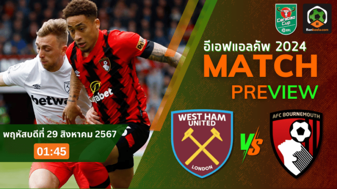 ดูบอลอีเอฟแอลคัพ 2024 ถ่ายทอดสด เวสต์แฮมยูไนเต็ด vs บอร์นมัธ เอเอฟซี 28/8/67 – บ้านกีฬา (bankeela1.com)