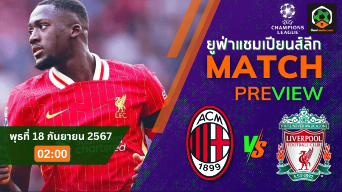 การแข่งขันยูฟ่าแชมเปียนส์ลีก 2024 ในค่ำคืนวันพุธที่ 18 กันยายน 2567 เวลา 02.00 น. เป็นศึกบิ๊กแมตช์ที่แฟนบอลทั่วโลกจับตามอง เมื่อสองยักษ์ใหญ่แห่งวงการฟุตบอลยุโรป เอซี มิลาน และ ลิเวอร์พูล จะเผชิญหน้ากันอีกครั้ง ทั้งสองทีมต่างเคยสร้างตำนานคว้าแชมป์ยุโรปรวมกันถึง 13 สมัย โดยพวกเขาเคยปะทะกันในนัดชิงชนะเลิศมาแล้วในปี 2005 และ 2007 ซึ่งต่างก็เต็มไปด้วยความดราม่าและความเข้มข้น