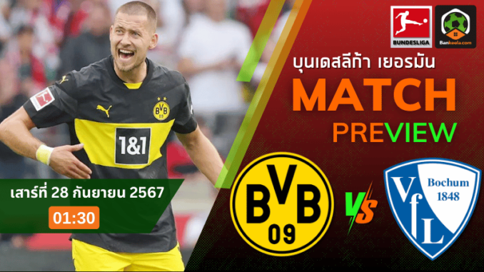 วันเสาร์ที่ 28 กันยายน 2567 เวลา 01.30 น. ศึกบุนเดสลีกา 2024 จะระเบิดความมันส์ขึ้นอีกครั้งเมื่อ โบรุสเซีย ดอร์ทมุนด์ ทีมรองแชมป์ยุโรปปีล่าสุด เตรียมเปิดสนามเหย้ารับการมาเยือนของ เฟาเอฟแอล โบคุ่ม ทีมท้ายตารางที่กำลังดิ้นรนเพื่อหาชัยชนะครั้งแรกในฤดูกาลนี้ ดอร์ทมุนด์ต้องการแก้ตัวหลังจากแพ้ยับในนัดก่อน การเจอกันครั้งนี้จึงเต็มไปด้วยความคาดหวังจากแฟนบอลที่จะเห็นทีมกลับมาสู่เส้นทางแห่งชัยชนะ