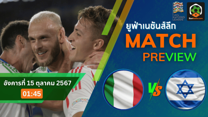 โปรแกรมบอลวันนี้ ถือเป็นการเจอกันระหว่างทีมที่กำลังอยู่ในฟอร์มต่างขั้ว โดย อิตาลี ทีมอันดับ 1 ของกลุ่ม กำลังอยู่ในช่วงฟอร์มร้อนแรงและเล่นในบ้าน ขณะที่ อิสราเอล ทีมเยือนที่ผลงานน่าเป็นห่วง แพ้ติดต่อกันหลายนัด การเจอกันครั้งล่าสุดในรายการนี้ อิสราเอล เปิดบ้านพ่าย อิตาลี ไป 1-2 ทำให้สถิติการพบกันทั้งหมด 3 นัด อิตาลีชนะรวดทั้งสามครั้ง และด้วยฟอร์มที่เหนือกว่าหลายช่วงตัว อิตาลียังคงมีโอกาสสูงในการเก็บชัยชนะในศึกยูฟ่าเนชันส์ลีกเกมนี้