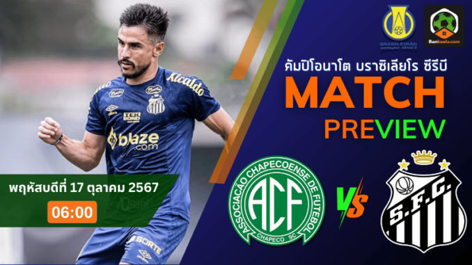 วิเคราะห์บอล คัมปิโอนาโต บราซิเลียโร ซีรีบี 2024 ชาเปโคเอนเซ่ เอสซี ปะทะ ซานโตส พฤหัสบดีที่ 17 ตุลาคม 2567 เวลา 06.00 น.