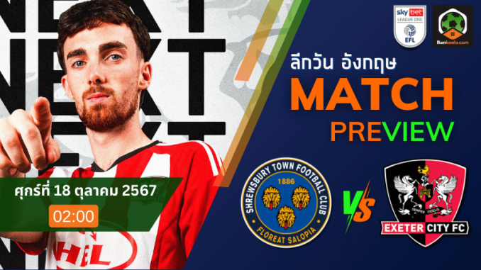 วิเคราะห์บอลลีกวัน อังกฤษ 2024 ระหว่าง ชรูว์สบิวรี่ ทาวน์ พบ เอ็กซ์เซเตอร์ ซิตี้ 17/10/67
