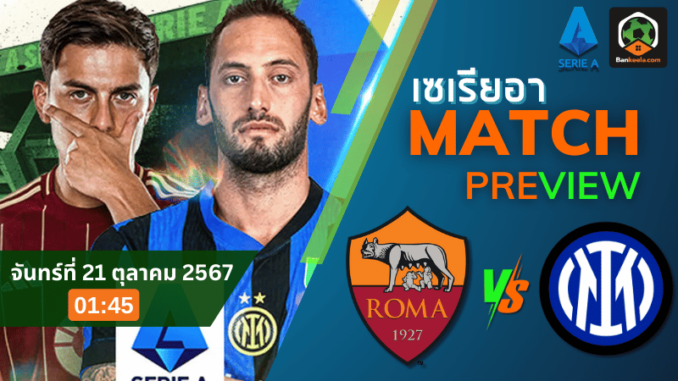ศึกฟุตบอล เซเรียอา อิตาลี ประจำวันจันทร์ที่ 21 ตุลาคม 2567 เวลา 01.45 น. เป็นการพบกันระหว่าง เอเอส โรม่า ทีมอันดับ 9 ของตาราง ที่ต้องเปิดบ้านต้อนรับการมาเยือนของ อินเตอร์ มิลาน ทีมอันดับ 4 ของลีกและอดีตแชมป์เก่า เกมนี้นับว่าเป็นอีกหนึ่งนัดสำคัญที่ทั้งสองทีมต้องการชัยชนะเพื่อลุ้นทำอันดับ และเพิ่มความมั่นใจในการลุ้นถ้วยในช่วงท้ายฤดูกาล