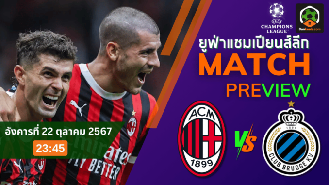 วิเคราะห์บอลสด แชมเปี้ยนส์ ลีก 2024 เอซี มิลาน พบ คลับบรูซ