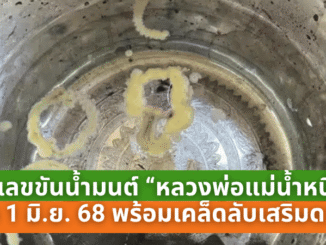 เปิดเลขขันน้ำมนต์ “หลวงพ่อแม่น้ำหนึ่ง” งวด 1 มิ.ย. 68 พร้อมเคล็ดลับเสริมดวงวันหวยออกให้เฮงจัดเต็ม!
