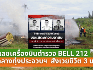 เปิดเลขเครื่องบินตำรวจ BELL 212 ตกกลางทุ่งประจวบฯ สะเทือนวงการ สังเวยชีวิต 3 นายตำรวจกล้า
