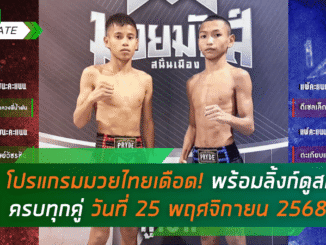 โปรแกรมมวยไทยเดือด! พร้อมลิ้งก์ดูสดครบทุกคู่ วันที่ 25 พฤศจิกายน 2568 จากทุกสังเวียนดัง