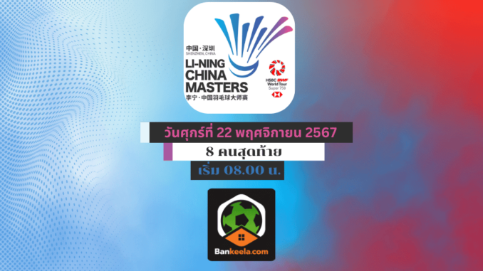 โปรแกรมการแข่งขัน BWF China Masters 2024 วันที่ 22 พฤศจิกายน 2024