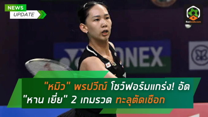 ในประเภท หญิงเดี่ยว รอบ 8 คนสุดท้าย “หมิว” พรปวีณ์ ช่อชูวงศ์ นักตบลูกขนไก่มือ 12 ของโลก และมือวาง อันดับ 8 ของรายการ ต้องเจอกับงานหินอย่าง หาน เยี่ย มือวางอันดับ 3 ของรายการ และมือ 4 ของโลก จากจีน