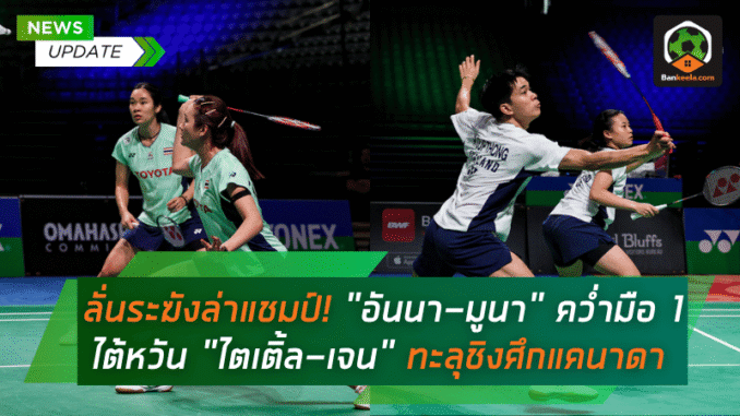พลังขนไก่ไทยระเบิดศึกเวทีโลกอีกครั้ง หลังสองคู่ความหวังของทัพแบดมินตันไทย “อันนา-มูนา” นันทน์กาญจน์ กับ เบญญาภา เอี่ยมสอาด และ “ไตเติ้ล-เจน” รุษฐนภัค อูปทอง กับ เฌอย์ณิชา สุดใจประภารัตน์ โชว์ฟอร์มแกร่งสมราคาทีมลุ้นแชมป์ ทะลุเข้าสู่รอบชิงชนะเลิศในศึกใหญ่ แคนาดา โอเพ่น 2025 รายการเวิลด์ทัวร์ ซูเปอร์ 300 ชิงเงินรางวัลรวมกว่า 7.9 ล้านบาท โดยจะลงสนามตัดสินแชมป์ในค่ำคืนนี้เวลา 22.00 น. ตามเวลาไทย ถ่ายทอดสดทาง True Sport 7 (686)