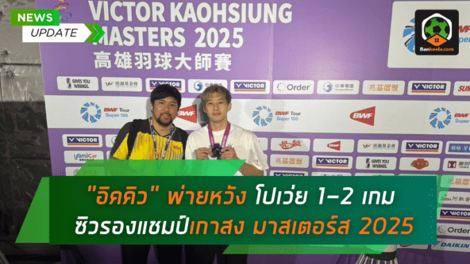 แฟนแบดมินตันไทยได้ลุ้นกันสุดมัน เมื่อ “อิคคิว” พณิชพล ธีระรัตน์สกุล นักตบลูกขนไก่มือ 46 ของโลก ฟอร์มแรงทะลุเข้าชิงศึก เกาสง มาสเตอร์ส 2025 แต่สุดท้ายต้องพ่ายให้กับเจ้าถิ่น หวัง โปเว่ย แบบสุดมัน 1-2 เกม คว้ารองแชมป์ไปครอง พร้อมตอกย้ำความแข็งแกร่งของนักแบดมินตันไทยในระดับนานาชาติ