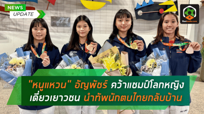 แฟนแบดมินตันไทยได้เฮสนั่น “หนูแหวนอัญพัชร์ พิชิตปรีชาศักดิ์ ผงาดคว้าแชมป์โลกหญิงเดี่ยวในศึก เวิลด์ จูเนียร์ แชมเปี้ยนชิพ 2025 พร้อมนำทัพ แบดมินตันเยาวชนไทย กลับถึงบ้านอย่างยิ่งใหญ่ หลังสร้างประวัติศาสตร์คว้า 1 เหรียญทอง และ 2 เหรียญทองแดงจากเวทีระดับโลกที่ประเทศอินเดีย