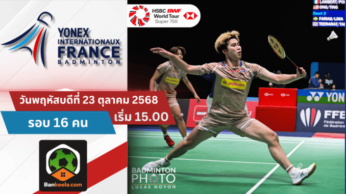 โปรแกรมถ่ายทอดสดการแข่งขัน BWF French Open 2025 (วันที่ 23 ตุลาคม 2568)