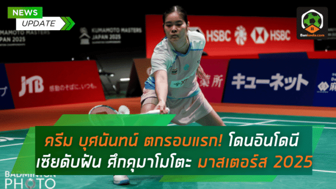 ประเภทหญิงเดี่ยว รอบแรกของศึกแบดมินตันระดับโลกอย่าง คุมาโมโตะ มาสเตอร์ส เจแปน 2025 เวิลด์ทัวร์ ซูเปอร์ 500 กลายเป็นอีกหนึ่งแมตช์ที่แฟนแบดไทยต้องเสียดายแบบสุดใจ เมื่อ “ครีม” บุศนันทน์ อึ๊งบำรุงพันธุ์ มือวางอันดับ 6 ของรายการ และมืออันดับ 16 ของโลก ต้องโบกมือลาตั้งแต่รอบแรก หลังพลาดท่าพ่ายให้กับ นี คาเดก ดินดา อมาตยา ปราติวี่ มืออันดับ 92 ของโลกจากอินโดนีเซีย ไปแบบสุดดราม่า 1-2 เกม ด้วยสกอร์ 15-21, 21-13, 21-23 ในวันพุธที่ 12 พฤศจิกายน 2568