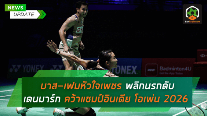 ศึกใหญ่ระดับเวิลด์ทัวร์ ซูเปอร์ 750 ที่กรุงนิวเดลี กลายเป็นเวทีประกาศศักดาคู่ผสมไทย เมื่อ บาส เดชาพล พัววรานุเคราะห์ จับคู่กับ เฟม ศุภิสรา เพียวสามพราน โชว์หัวจิตหัวใจเกินร้อย ฮึดพลิกสถานการณ์จากที่ตามหลัง 0-1 เกม แซงชนะคู่แกร่งจากเดนมาร์ก ผงาดคว้าแชมป์ อินเดีย โอเพ่น 2026 แบบสุดระทึก พร้อมหอบเงินรางวัลรวมกว่า 2.2 ล้านบาท กลับบ้านให้แฟนกีฬาชาวไทยได้เฮสนั่น