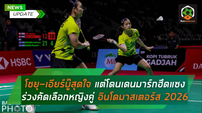 แฟนกีฬาไทยต้องแอบเสียดายไม่น้อย เมื่อคู่หญิงไทยอย่าง “โชยุ” กชพร ชัยชนะ จับคู่กับ “เอียร์” ปัณณวีร์ พลเยี่ยม คู่มืออันดับ 123 ของโลก ลงลุยศึก แบดมินตัน ประเภทหญิงคู่ รอบคัดเลือก ในรายการ อินโดนีเซีย มาสเตอร์ส 2026 ระดับ เวิลด์ทัวร์ ซูเปอร์ 500 แต่สุดท้ายแม้จะใส่เต็มเหนี่ยวแล้ว ยังต้านความแน่นอนของคู่จากเดนมาร์กไม่อยู่ พ่าย แคทเธอรีน แวง กับ เมตตี้ เวิร์จ คู่มืออันดับ 74 ของโลกไปอย่างน่าเสียดาย 1-2 เกม สกอร์ 21-12, 9-21, 13-21 เมื่อวันอังคารที่ 20 ม.ค. 69