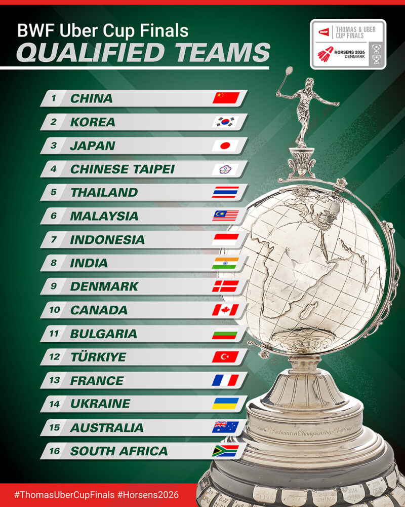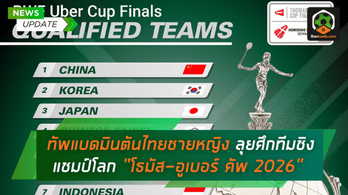 สหพันธ์แบดมินตันโลก (BWF) ประกาศรายชื่อชาติที่ได้สิทธิ์เข้าร่วมรอบไฟนอลรายการ โธมัส-อูเบอร์ คัพ 2026 (BWF Thomas & Uber Cup Finals 2026) อย่างเป็นทางการ และทีมชาติไทยทำได้ตามเป้า คว้าตั๋วรอบสุดท้ายได้สำเร็จครบทั้งทีมชายและทีมหญิง
