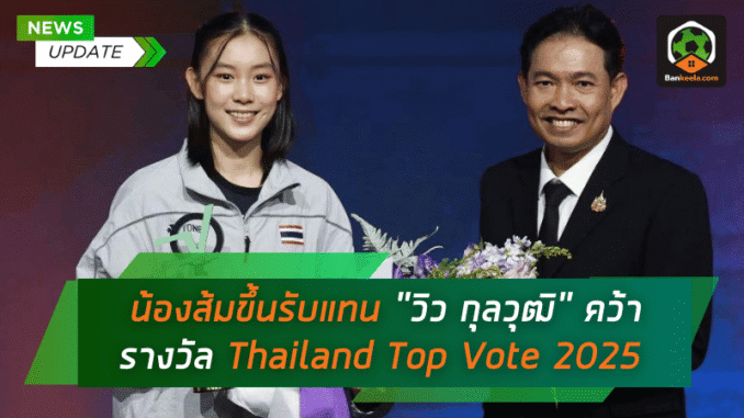 น้องส้ม สรัลรักษ์ วิทิตศานต์ ทำหน้าที่เป็นตัวแทนขึ้นรับรางวัล Thailand Top Vote 2025 สาขา สุดยอดนักกีฬาแห่งปี แทนพี่ชาย “วิว กุลวุฒิ” ที่กวาดคะแนนโหวตสูงสุดแบบทิ้งห่าง สะท้อนแรงหนุนจากแฟนกีฬาไทยที่ยังเชื่อมั่นในฝีมือและผลงานของเขาอย่างชัดเจน