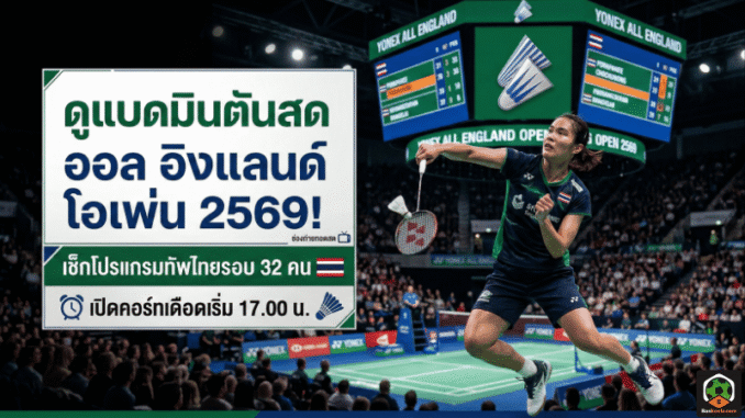 โปรแกรมแบดมินตัน ออล อิงแลนด์ โอเพ่น กลับมาระเบิดความมันส์ที่ ยูทิลิตา อารีน่า เมืองเบอร์มิงแฮม ประเทศอังกฤษ ระหว่างวันที่ 3-8 มีนาคม 2569 โดยวันอังคารที่ 3 มีนาคม 2569 ลงสนามกันใน “รอบ 32 คน” และทัพนักกีฬาไทยมีคิวแข่งตั้งแต่คู่แรกเวลา 17.00 น. เป็นต้นไป
