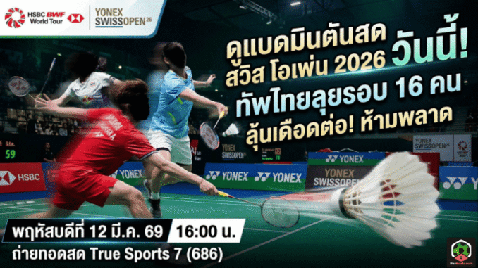 ใครไม่อยากพลาดโปรแกรม ดูแบดมินตันสด สวิส โอเพ่น 2026 วันนี้ หรืออยากตามลุ้น ผลแบดมินตันนักกีฬาไทยรอบ 16 คนแบบสดๆ ติดตามต่อได้ที่ แบดมินตันสดบ้านกีฬา ครบทั้งตารางแข่ง ผลย้อนหลัง และลิงก์ถ่ายทอดสดดูง่ายในที่เดียว