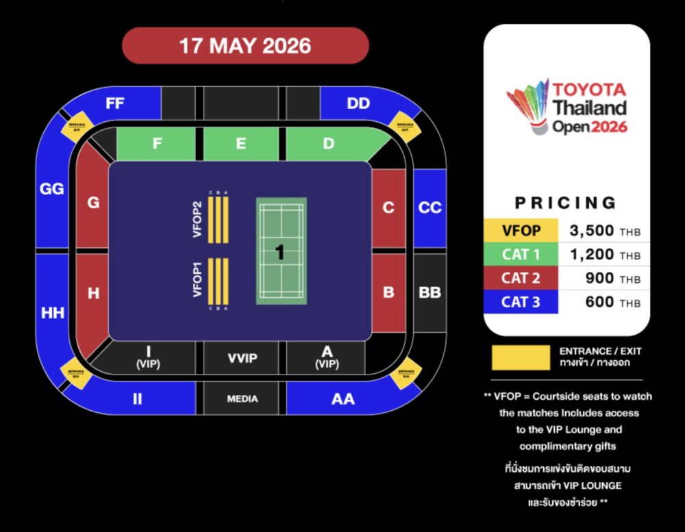 หนึ่งในจุดเด่นที่ทำให้รายการนี้น่าสนใจคือราคาบัตรที่เปิดโอกาสให้แฟนกีฬาเข้าชมได้ไม่ยาก โดยบัตรเข้าชมเริ่มต้นเพียง 100 บาท เท่านั้น ถือเป็นโอกาสดีสำหรับแฟนแบดมินตันที่อยากเข้าไปสัมผัสเกมจริงแบบติดสนาม และร่วมส่งเสียงเชียร์นักกีฬาคนโปรดกันแบบเต็มอารมณ์
