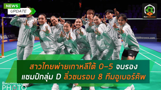 สาวไทยสู้เต็มคอร์ตก่อนพ่ายเกาหลีใต้ 0-5 จบรองแชมป์กลุ่ม D ลิ่วชนรอบ 8 ทีมอูเบอร์คัพ