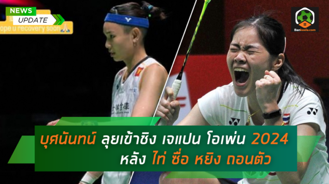 บุศนันทน์ อึ๊งบำรุงพันธุ์ นักแบดมินตันหญิงเดี่ยวมือ 14 ของโลกจากไทย ผ่านเข้าสู่รอบชิงชนะเลิศรายการ ไดฮัทสุ เจแปน โอเพ่น 2024 โดยไม่ต้องลงสนาม หลังจาก ไท่ ซื่อ หยิง มือวางอันดับ 4 ของโลกจากไต้หวัน ตัดสินใจถอนตัวเนื่องจากอาการบาดเจ็บที่หัวเข่าซ้าย
