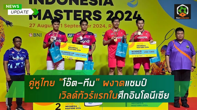 แบดมินตัน อินโดนีเซีย มาสเตอร์ส 2024 นับเป็นอีกหนึ่งทัวร์นาเมนต์ที่นักแบดมินตันจากทั่วโลกต่างมุ่งหน้ามาเข้าร่วมแข่งขัน โดยเฉพาะอย่างยิ่งเมื่อมีนักแบดมินตันไทยที่สามารถเอาชนะคู่แข่งระดับสูงได้อย่างยอดเยี่ยม การคว้าแชมป์ครั้งนี้นับเป็นก้าวสำคัญที่แสดงให้เห็นถึงความมุ่งมั่นและความทุ่มเทของ “โอ๊ต” เฉลิมพล และ “ทีม” วรพล ที่สามารถทำผลงานได้อย่างยอดเยี่ยมแม้จะเพิ่งจับคู่กันเป็นครั้งแรก