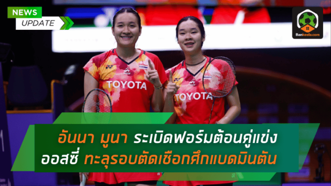 ในศึกแบดมินตันรายการ โยเน็กซ์ ไทเป โอเพ่น 2024 ซึ่งเป็นการแข่งขันในระดับเวิลด์ทัวร์ ซูเปอร์ 300 ที่มีเงินรางวัลรวมกว่า 210,000 เหรียญสหรัฐฯ (ประมาณ 7,140,000 บาท) โดยจัดขึ้นที่กรุงไทเป ประเทศไต้หวัน เมื่อวันศุกร์ที่ 6 กันยายนที่ผ่านมา คู่แข่งหญิงคู่อันดับ 1 ของรายการ “อันนา” และ “มูนา” จากไทย ลงสนามในรอบก่อนรองชนะเลิศ พบกับคู่จากออสเตรเลีย โนโซมิ ชิมิซุ และ กรอนย่า ซอเมอร์วิลล์ ซึ่งสามารถคว้าชัยไปด้วยสกอร์ 21-14 และ 21-12 อย่างไร้ที่ติ