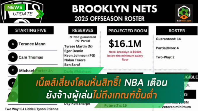 แม้ บรู้กลิน เน็ตส์ จะเพิ่งเดินหน้าต่อสัญญากับผู้เล่นแกนสำคัญอย่าง แคม โธมัส, เดย์รอน ชาร์ป และ เซียเร่ วิลเลี่ยมส์ ไปหมาด ๆ แต่รายงานล่าสุดจาก ESPN ระบุชัดว่าภาพรวมค่าเหนื่อยทั้งทีมยังไม่แตะเกณฑ์ขั้นต่ำตามที่ NBA กำหนดไว้ ตัวเลขปัจจุบันอยู่ที่ 138.53 ล้านดอลลาร์สหรัฐ ขณะที่เกณฑ์ขั้นต่ำคือ 139.18 ล้านดอลลาร์ นั่นหมายความว่ายังขาดอีกถึง 649,000 ดอลลาร์ที่ต้องเร่งอุดช่องว่าง
