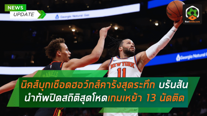 นิวยอร์ก นิคส์ โชว์ความนิ่งในช่วงเวลาตัดสิน บุกสยบ แอตแลนตา ฮอว์กส์ ถึงรัฐจอร์เจีย 108-105 คะแนน เมื่อวันจันทร์ที่ผ่านมา พร้อมหยุดสถิติสุดร้อนแรงของเจ้าถิ่นที่กวาดชัยในบ้านต่อเนื่องมา 13 เกมติดได้สำเร็จ ถือเป็นอีกหนึ่งเกมเดือดที่แฟน บาสเกตบอล NBA ได้ลุ้นกันจนวินาทีสุดท้าย