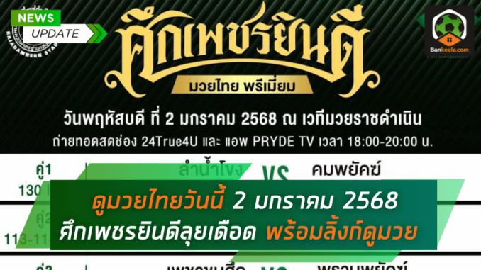 ดูมวยไทยวันนี้ 2 มกราคม 2568 ศึกเพชรยินดีลุยเดือด พร้อมลิ้งก์ดูมวยสดครบทุกคู่