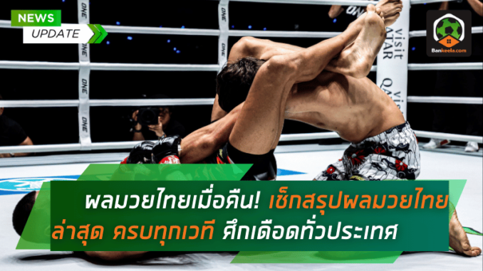 แฟนหมัดมวยห้ามพลาด! สรุปผลมวยไทยเมื่อคืนที่ผ่านมา เช็กผลมวยไทยครบทุกศึก ไม่ว่าจะเป็น ONE ลุมพินี, ศึกมวยมันส์วันศุกร์, ศึกเพชรยินดี, มวยไทย 7 สี, ศึกจ้าวมวยไทย, RWS ราชดำเนิน เวิลด์ซีรีส์ และอีกมากมาย พร้อมรายละเอียดครบถ้วน ใครชนะ ใครแพ้ น็อกยกไหน เช็กได้ที่นี่!