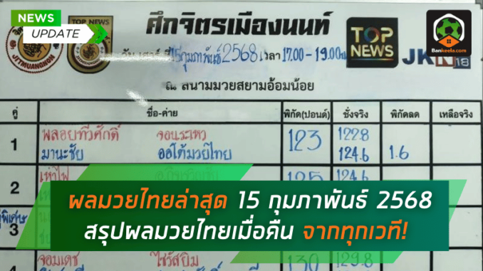 ผลมวยไทยล่าสุด 15 กุมภาพันธ์ 2568 สรุปผลมวยไทยเมื่อคืน ศึกเดือดจากทุกเวที!